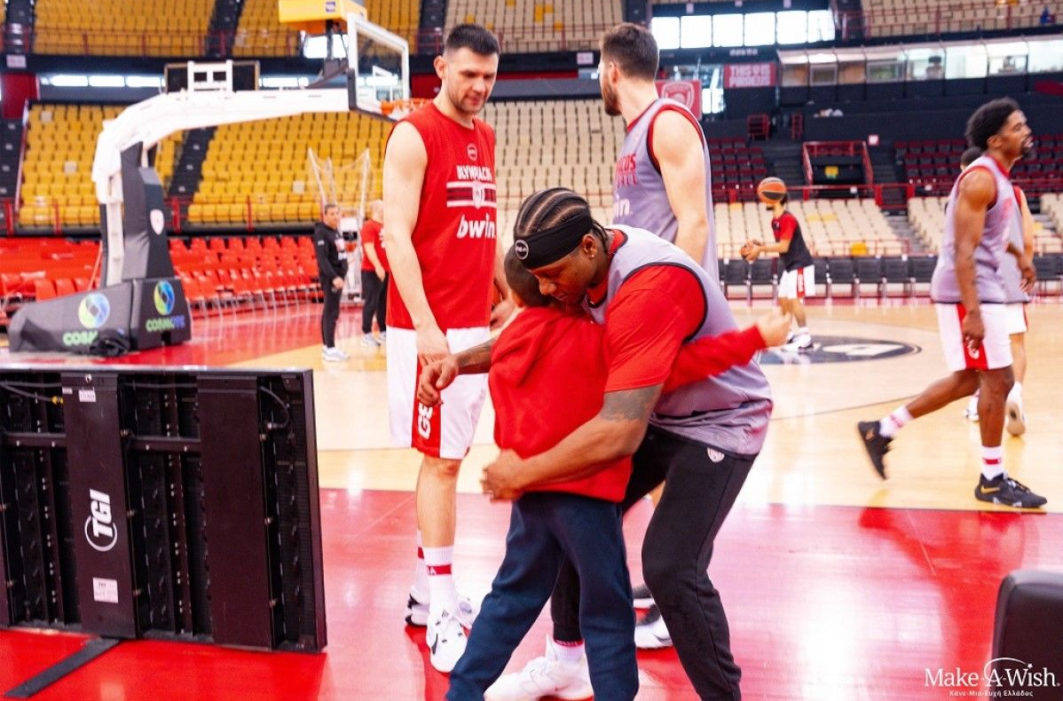 Επίσης, ο πιτσιρικάς είχε την ευκαιρία να βρεθεί και σε μία προπόνηση της ομάδας του Γιώργου Μπαρτζώκα, γνωρίζοντας όλους τους αγαπημένους του μπασκετμπολίστες, που τον υποδέχθηκαν με μία ανοιχτή και ζεστή αγκαλιά όλοι τους. Ακολούθησε ξενάγηση σε όλο το ΣΕΦ, στα αποδυτήρια, στο γραφείο του Μπαρτζώκα, ενώ έδωσε και τη δική του συνέντευξη Τύπου μιλώντας για την αγαπημένη του ομάδα: Τον Ολυμπιακό.