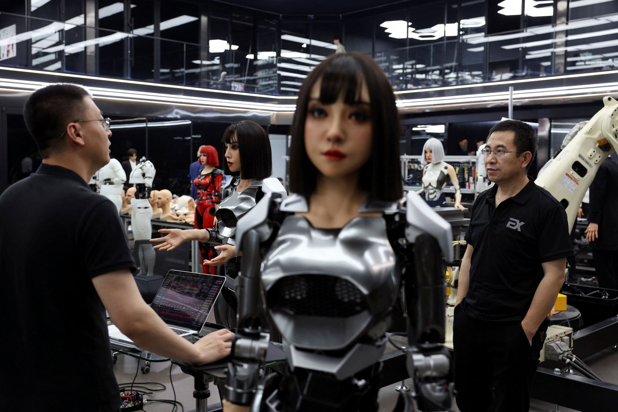 Στο εργοστάσιο της εταιρείας Ex-Robots στην παράκτια κινεζική πόλη του Νταλιάν, οι μηχανικοί αναπτύσσουν ανθρωποειδή ρομπότ δίνοντας έμφαση στις εκφράσεις του προσώπου.