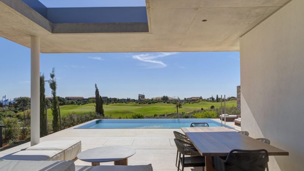 Σκέψου λοιπόν όλο αυτό να το έχεις από το δικό σου σπίτι. Φαντάσου μια κατοικία που αποπνέει την εκλεπτυσμένη αισθητική του τόπου, φτιαγμένη με τα καλύτερα υλικά και σχεδιασμένη τόσο άρτια, που θα θέλεις να μένεις εκεί όλο τον χρόνο. Μία κατοικία που θα γίνει ο απόλυτος προορισμός για σένα φυσικά αλλά και τους φίλους σου. Γιατί όποιος τη βλέπει απλά την ερωτεύεται. Αν αγαπάς το γκολφ, σκέψου ότι από την πισίνα σου απλώνεται μπροστά σου ένα καταπράσινο γήπεδο που φτάνει μέχρι τη θάλασσα.