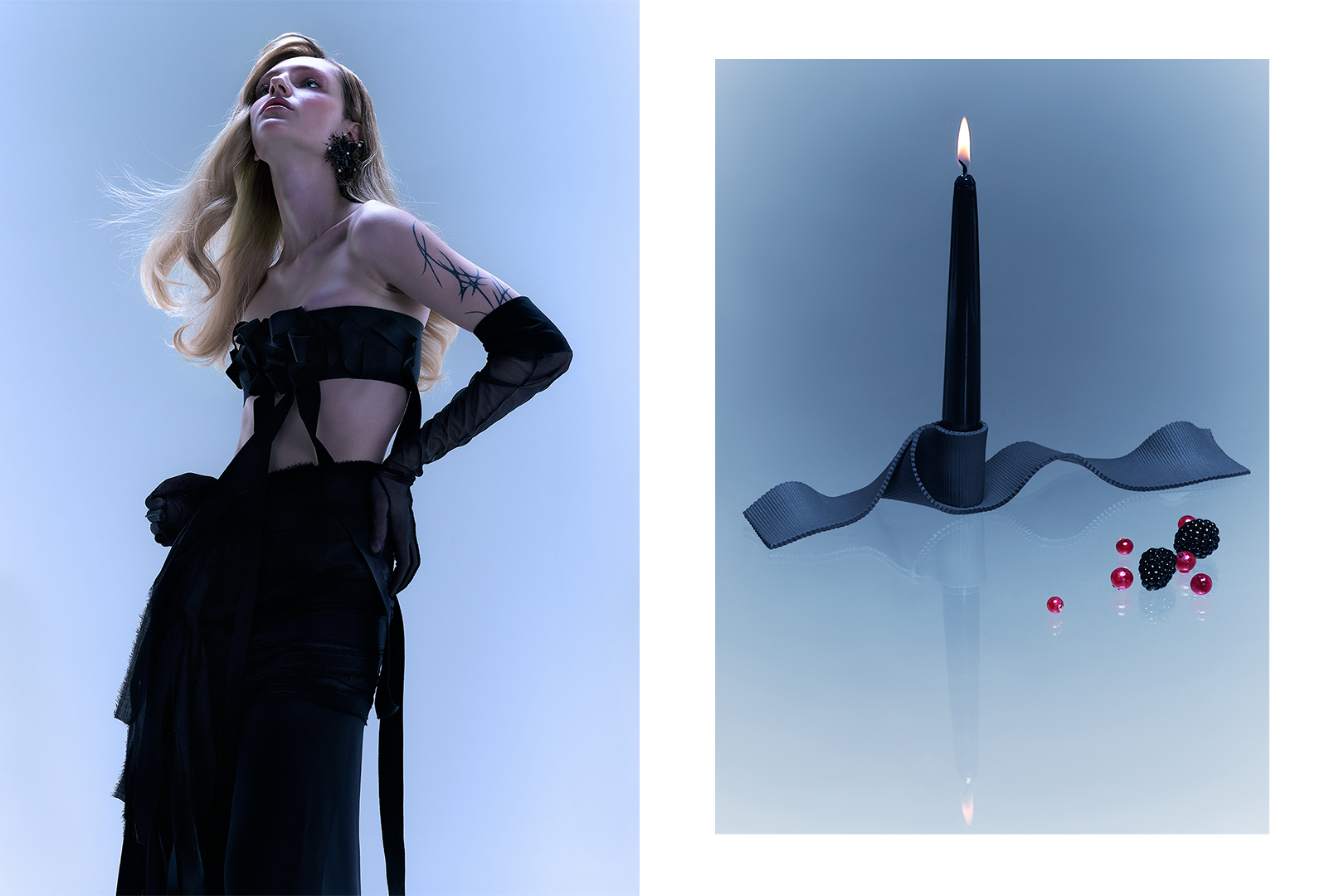 Η Le Ruban ολοκληρώνεται με μια ομώνυμη capsule συλλογή ρούχων που αποτελείται από 6 outfits κι έρχεται να «ντύσει» στιλιστικά το concept της δημιουργικής συνέργειας της καταξιωμένης σχεδιάστριας με τη βραβευμένη κεραμίστρια συνθέτοντας μια αρμονική εικόνα.