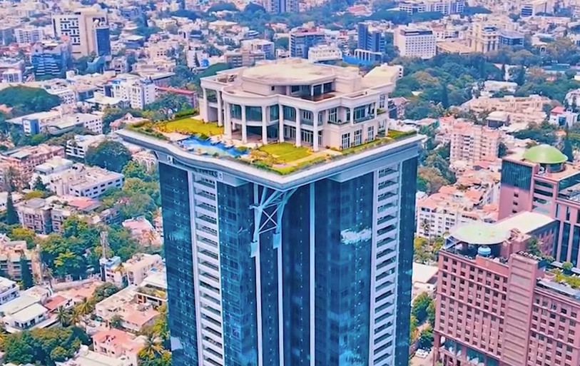 Το εντυπωσιακό αρχοντικό βρίσκεται στην κορυφή ενός τεράστιου ουρανοξύστη