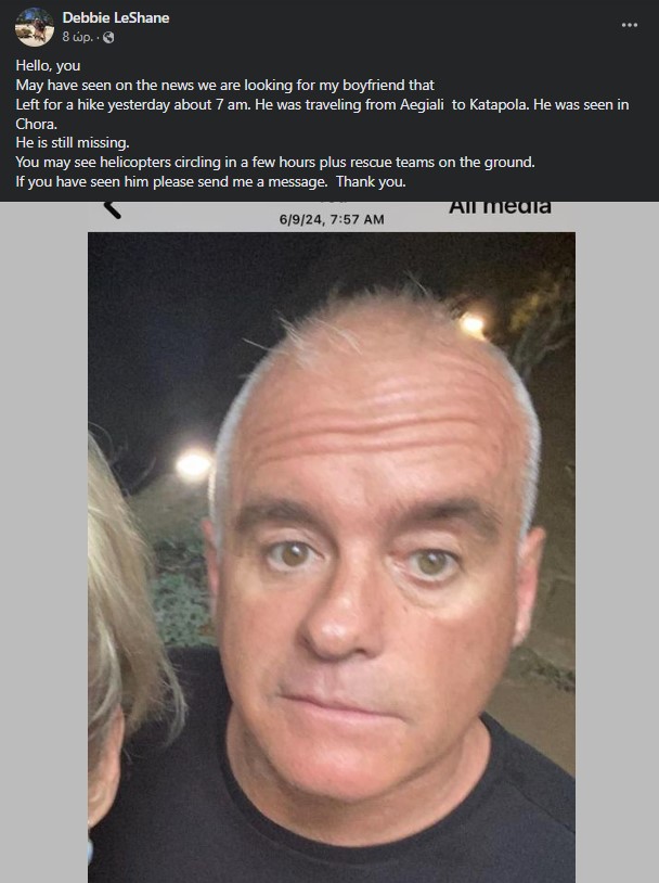 Χαρακτηριστική είναι η ανάρτηση της συντρόφου στα social media, που ζητά από όποιον τον είδε να επικοινωνήσει μαζί της.