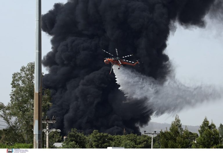 Οι φλόγες καίνε φελιζόλ και πλαστικά, ενώ επιχειρεί και ελικόπτερο Erickson - Η ΕΛ.ΑΣ. προχώρησε σε διακοπή της κυκλοφορίας των οχημάτων σε διάφορα σημεία