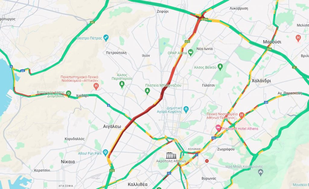 Όπως φαίνεται και στον χάρτη, η κυκλοφορία των οχημάτων γίνεται με αρκετά αργό ρυθμό, με τους οδηγούς να χρειάζονται αρκετά λεπτά για να διανύσουν αποστάσεις μερικών μέτρων.