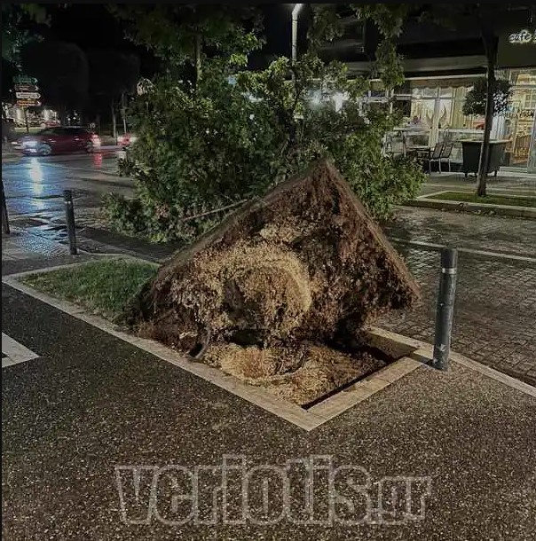 Όπως φαίνεται και στις φωτογραφίες, ένα μεγάλο δέντρο στην οδό Ελιάς κοντά στην πλατεία, «ξηλώθηκε» και έπεσε στο οδόστρωμα, ευτυχώς χωρίς να υπάρξουν τραυματισμοί.