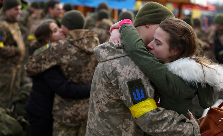 Οι αρχές της Ουκρανίας ανακοίνωσαν χθες Παρασκευή ότι συνέλαβαν 41 άνδρες σε στρατεύσιμη ηλικία κρυμμένους σε φορτηγό με σιτηρά που θεωρούν πως κατευθυνόταν στα σύνορα με τη Ρουμανία ή με τη Μολδαβία (στη φωτογραφία αρχείου του Reuters, επάνω, τελευταίοι αποχαιρετισμοί λίγο πριν φύγουν για το μέτωπο).