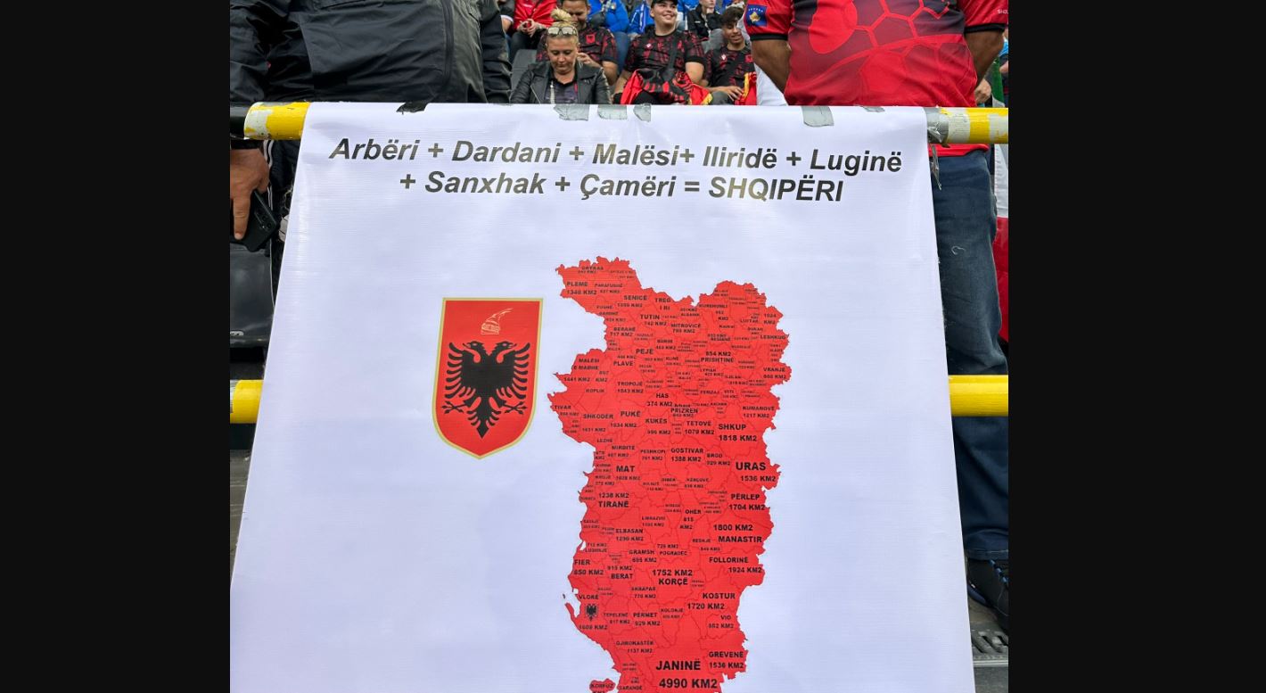 Οι Αλβανοί οπαδοί βρίσκονται στην Γερμανία για να δουν από κοντά τις προσπάθειες της Εθνικής τους ομάδας ποδοσφαίρου για μια αξιοπρεπή εμφάνιση στο Euro 2024, ενάντια στα θηρία: την Ιταλία, την Ισπανία και την Κροατία. Ένας εξ αυτών των οπαδών θεώρησε πολύ φυσιολογικό να φέρει μαζί του ένα πανό, το οποίο συμπεριελάμβανε έναν χάρτη: τον χάρτη της «Μεγάλης Αλβανίας».