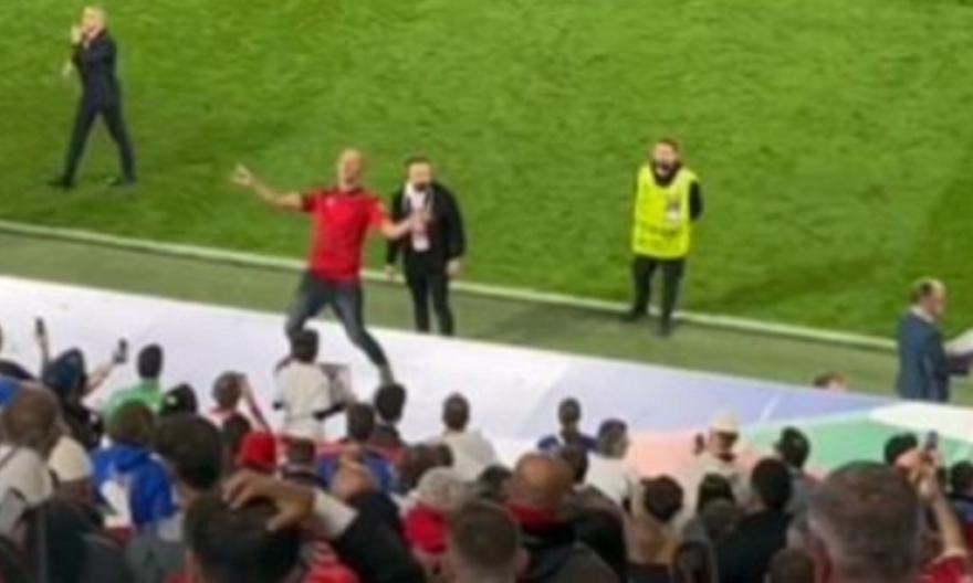 Αλβανός οπαδός ανέβηκε πάνω στους πάγκους των ομάδων, περπάτησε για αρκετή ώρα και κάποια στιγμή άρχισε να χορεύει!