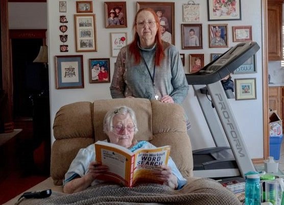 Η ερευνήτρια στο Πανεπιστήμιο της Οκλαχόμα Κιμ Μόσερ, με την ανήμπορη μητέρα της στο σπίτι τους. (The Wall Street Journal)