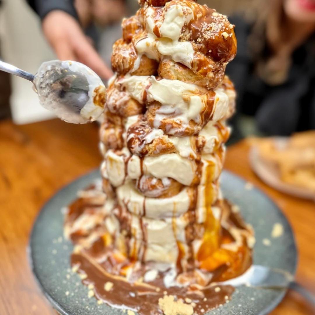Εκτός από το περίφημο Zambri Τower, ένα προφιτερόλ που μοιράζεται όλη η παρέα, θα σε μαγέψει η μους γάλακτος με tofu καραμέλας, τραγανή βάση από φεγεντίνη, namelaka σοκολάτας γάλακτος και σιρόπι καραμέλας.