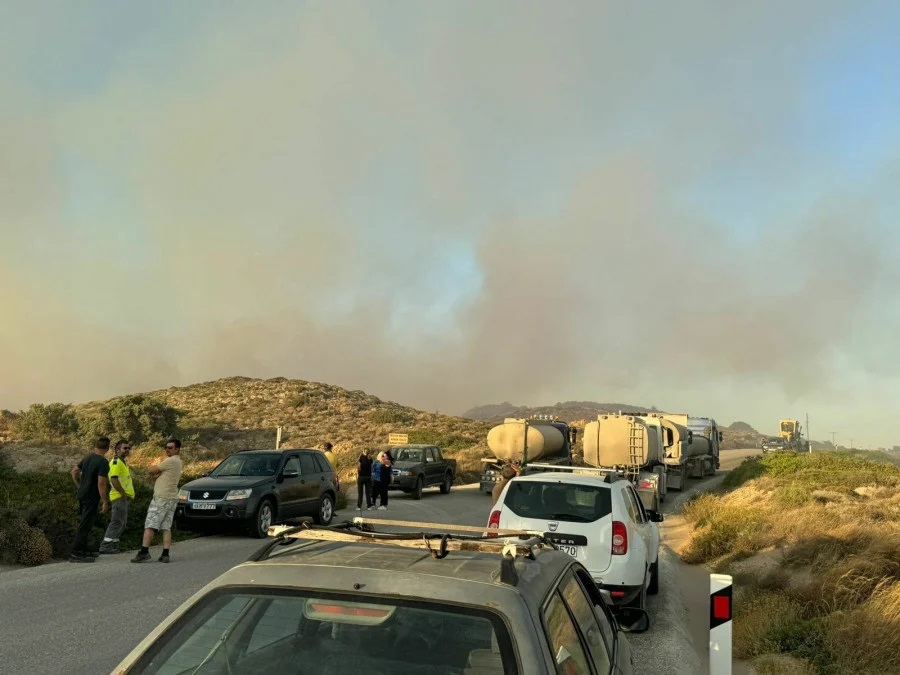 Συνδρομή στο έργο της κατάσβεσης παρέχουν εθελοντές πυροσβέστες με υδροφόρα οχήματα και υδροφόρες ΟΤΑ.