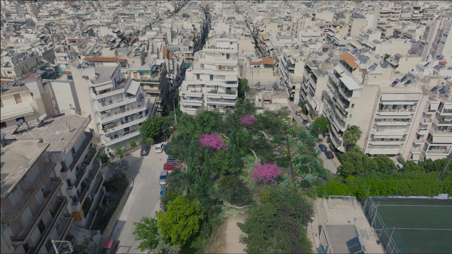 *Στην αεροφωτογραφία φαίνεται η σημερινή μορφή του κοινόχρηστου χώρου που πρόκειται να φυτευτεί το micro Forest, ενώ η 3D αναπαράσταση δείχνει πως θα είναι σε 20 χρόνια ο ίδιος χώρος, βάσει των υπολογισμών που έχουν γίνει κατά προσέγγιση από τις επιστημονικές ομάδες. Η αναμόρφωση του χώρου ξεκινάει τέλος καλοκαιριού και οι πρώτες φυτεύσεις τον Οκτώβριο.