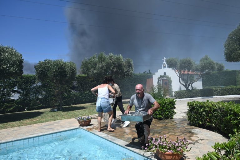 Παρά το «μπαράζ» από το 112, αρκετοί κάτοικοι αντί να εκκενώσουν παράμειναν στη σημείο και προσπαθούν να προστατεύσουν τις περιουσίες και τα ζώα τους.