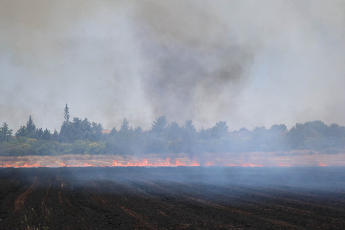 Η πυρκαγιά στη Λάρισα εντοπίζεται σε υπολείμματα καλλιεργειών