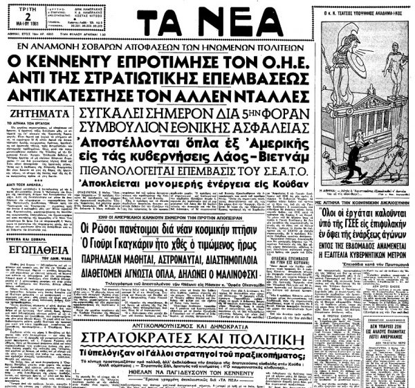 «ΤΑ ΝΕΑ», 2.5.1961, Ιστορικό Αρχείο «ΤΟ ΒΗΜΑ» & «ΤΑ ΝΕΑ»