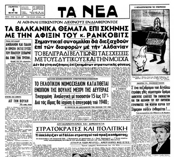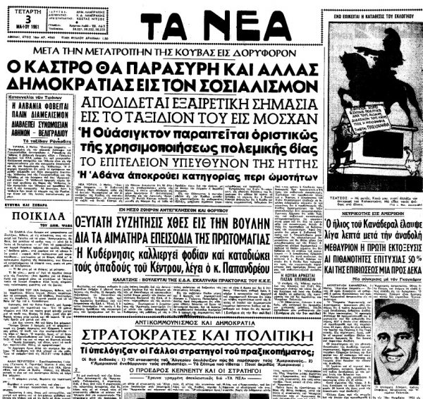 «ΤΑ ΝΕΑ», 4.5.1961, Ιστορικό Αρχείο «ΤΟ ΒΗΜΑ» & «ΤΑ ΝΕΑ»