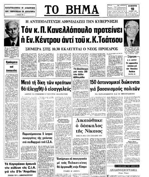 Στην κεντρική φωτογραφία του παρόντος άρθρου, ο Κωνσταντίνος Τσάτσος διά χειρός Μιχάλη Βαφειάδη (πηγή: «Ταχυδρόμος», 1.12.1988).