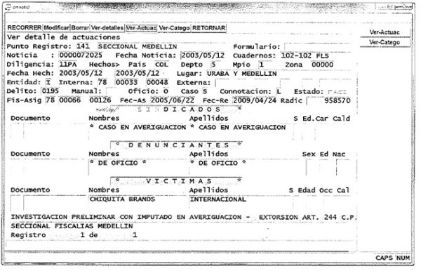 Κατά τη διάρκεια της δίκης του 2007, αποκαλύφθηκε ότι η Chiquita είχε καταβάλει πληρωμές ύψους άνω των 1,7 εκατ. δολαρίων στην AUC κατά την εξαετία 1997-2004. Ο γίγαντας της μπανάνας δήλωσε ότι άρχισε να καταβάλλει τις πληρωμές αφού ο τότε ηγέτης της AUC, Carlos Castaño, άφησε να εννοηθεί ότι το προσωπικό και η περιουσία της θυγατρικής της Chiquita στην Κολομβία θα μπορούσαν να υποστούν ζημιά αν δεν καταβάλλονταν τα χρήματα.