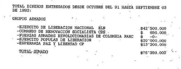 Ένα από τα έγγραφα που βεβαιώνουν τις πληρωμές στους τρομοκράτες.