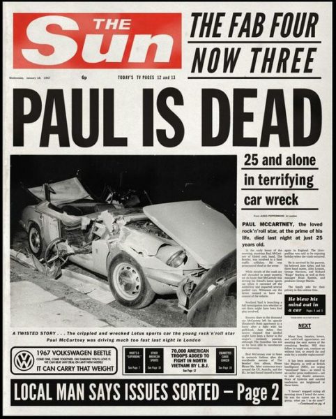 Η σκανδαλοθηρική Sun «πέθανε» τον Paul Mc Cartney το 1966