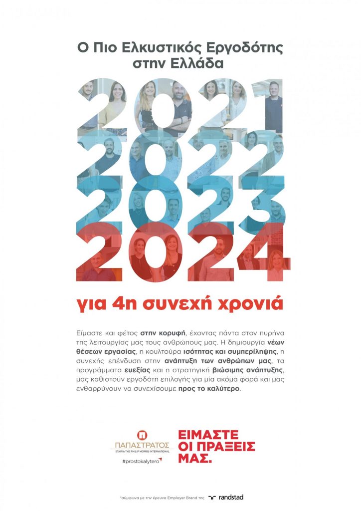 Η αλήθεια είναι πως τα πράγματα έχουν αλλάξει σημαντικά με την είσοδο των Gen Zers στον επαγγελματικό στίβο, καθώς αυτοί μαζί με τους Millennials φέρνουν δυναμικά στο προσκήνιο ως κριτήρια επιλογής εργοδότη, έννοιες όπως «ισότητα», «συμπερίληψη» και «work-life balance». Και ένας εργοδότης που ανταποκρίνεται στα αιτήματά τους, είναι σίγουρα η Παπαστράτος, η οποία αναδείχθηκε ως «ο Πιο Ελκυστικός Εργοδότης στην Ελλάδα», σύμφωνα με την πρόσφατη έρευνα Employer Brand που πραγματοποίησε η Randstad για το 2024.
