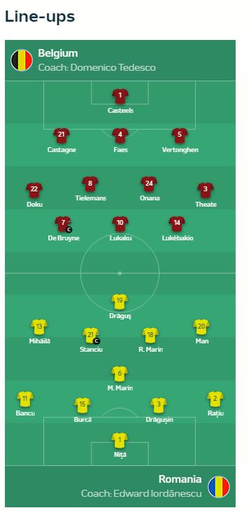 Βέλγιο και Ρουμανία κοντράρονται στο πλαίσιο της 2ης αγωνιστικής των ομίλων του Euro 2024 και λίγο πριν την έναρξη της αναμέτρησης έγιναν γνωστές οι ενδεκάδες των δύο ομάδων.