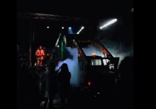 Στο βίντεο που έγινε viral στα μέσα κοινωνικής δικτύωσης διακρίνεται ο καλλιτέχνης δίπλα από την ορχήστρα και ο εορτάζοντας στη θέση του οδηγού του μηχανήματος.
