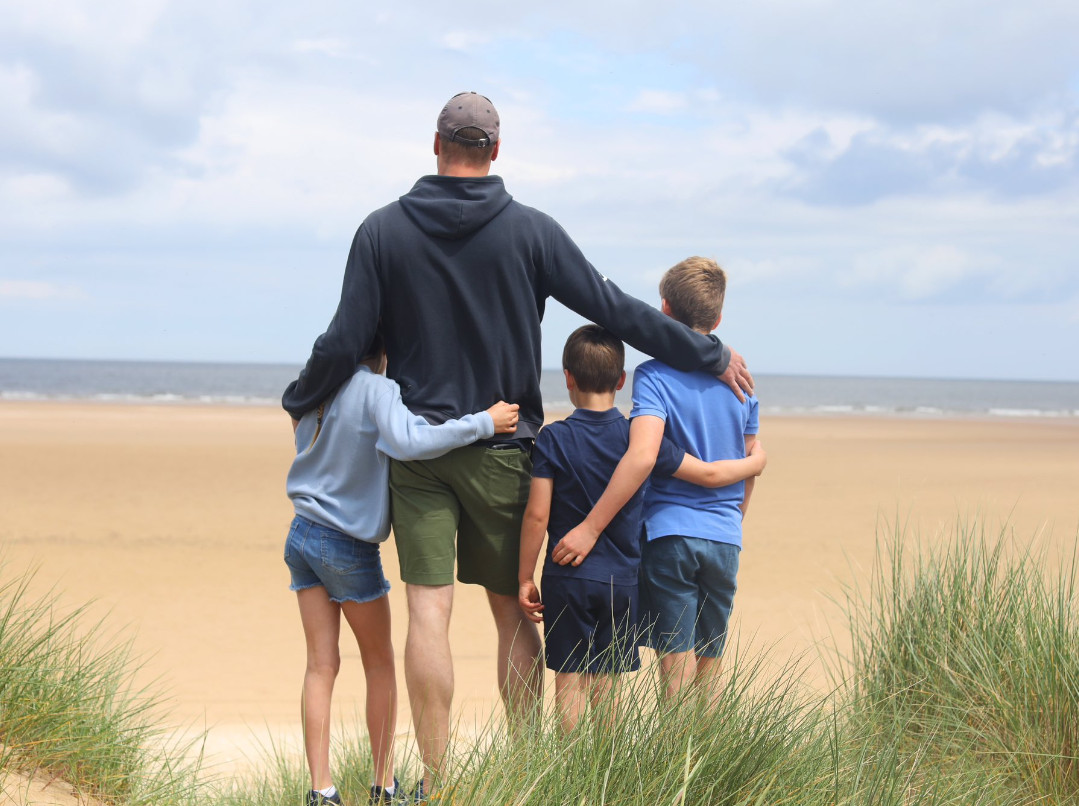 Η Κέιτ Μίντλετον απαθανάτισε πλάτη τον πρίγκιπα Γουίλιαμ με τον πρίγκιπα Τζορτζ, την πριγκίπισσα Σάρλοτ και τον πρίγκιπα Λούις ενώ κοιτούσαν όλοι μαζί αγκαλιασμένοι προς τη θάλασσα.