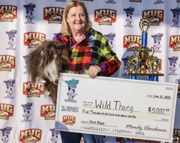 Ο οκτάχρονος σκύλος, του οποίου η γλώσσα κρέμεται συνεχώς από το στόμα του, πήγε σπίτι με μια επιταγή 5.000 δολαρίων και ένα ταξίδι στη Νέα Υόρκη.