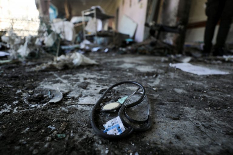 Στις παρακάτω εικόνες φαίνεται η ολοσχερής καταστροφή της κλινικής, όπως και ένα στηθοσκόπιο στα χαλάσματα.