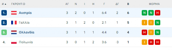 Τι έκανε η Αυστρία! Η ομάδα του Ραλφ Ράνγκνικ επικράτησε με 3-2 της Ολλανδίας στο Βερολίνο και σε συνδυασμό με το 1-1 της Γαλλίας κόντρα στην Πολωνία πήρε την πρώτη θέση στον τέταρτο όμιλο του Euro, ανατρέποντας όλα τα προγνωστικά.