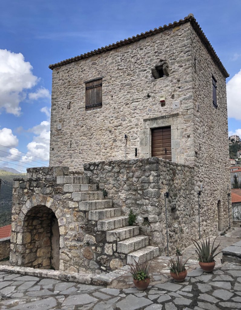 Τα δύο αναστηλωμένα πυργόσπιτα. Το ένα είναι του Μαντζουρανόγιαννη, θεωρείται του 1400 και αποτελεί ένα από τα σημαντικότερα οχυρά βυζαντινά οικήματα που έχουν συντηρηθεί. Το άλλο λέγεται της Λεβένταινας και κτίστηκε στα τέλη του 18ου αι.
