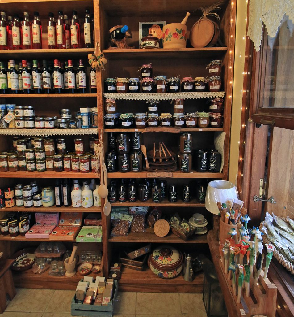 Στο λιθόστρωτο δρομάκι που ξεκινάει από το κέντρο της Καρύταινας θα βρείτε το Παντοπωλείο της Κυριακής για να αγοράσετε παραδοσιακά ζυμαρικά -που φτιάχνει στο εργαστήριό της με τις πατροπαράδοτες συνταγές -και άλλα προϊόντα.