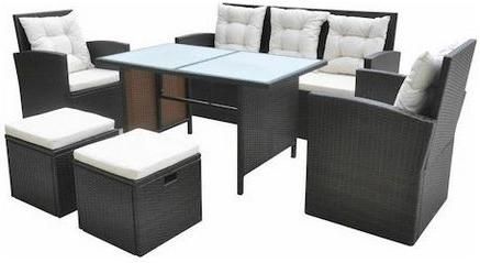 Εναλλακτικά, το Σετ Σαλόνι / Τραπεζαρία Center αποτελεί μία κομψή επιλογή επίπλωσης για τον κήπο ή το μπαλκόνι του σπιτιού ή του επαγγελματικού σας χώρου! Πρόκειται για έναν γωνιακό καναπέ επτά θέσεων, ένα παγκάκι και ένα τραπέζι.