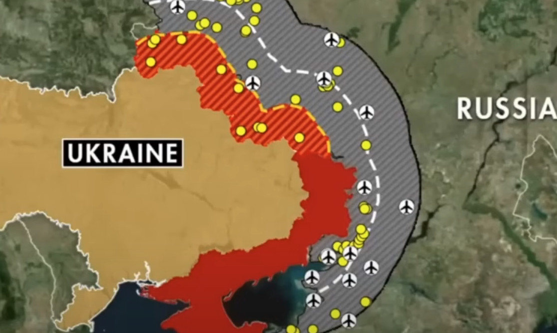 Σύμφωνα, όμως, με τον Κιν εάν το Κίεβο είχε την άδεια να χτυπήσει τις στρατιωτικές βάσεις της Ρωσίας -που βρίσκονται στη γκρίζα περιοχή στον χάρτη- τότε ο πόλεμος θα άλλαζε πορεία.