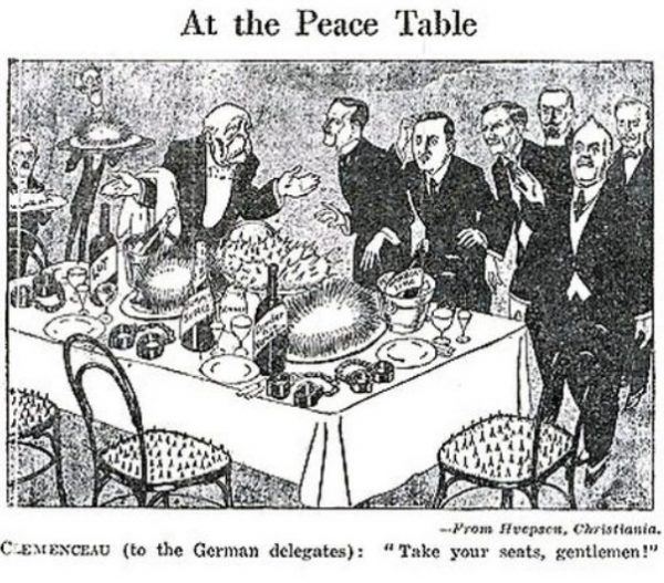 Η ταπείνωση της Γερμανίας και η αποσάθρωση της οικονομίας της συνεπεία των όρων της Συνθήκης των Βερσαλλιών οδήγησαν, μαζί με άλλους ασφαλώς παράγοντες, στο ξέσπασμα του Β’ Παγκοσμίου Πολέμου.