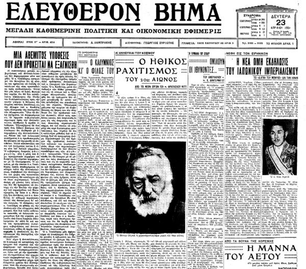 *Κείμενο του διακεκριμένου αμερικανού εκδότη, δημοσιογράφου και συγγραφέα Cornelius Vanderbilt (1898-1974), που έφερε τον τίτλο «Η Γερμανία του Χίτλερ – Ομιλούν οι ιθύνοντες» και είχε δημοσιευτεί στην εφημερίδα «Ελεύθερον Βήμα» στις 23 Απριλίου 1934.