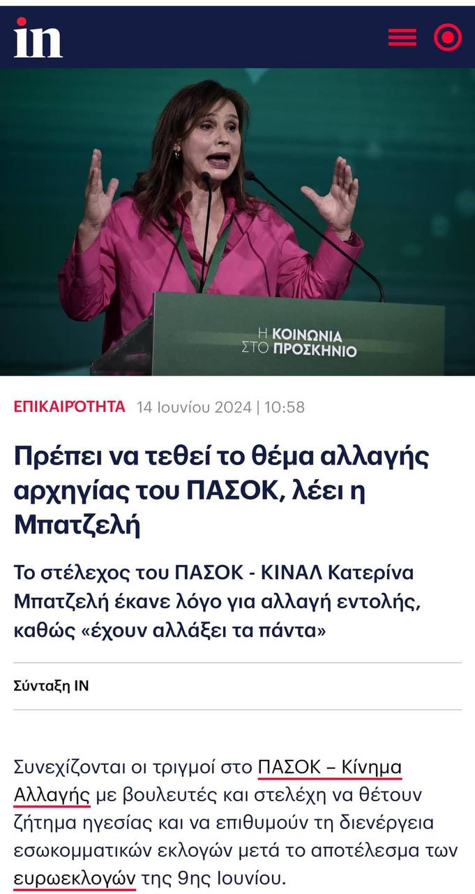 Στις 14 Ιουνίου είχε προηγηθεί η δήλωση του μέλους της Κεντρικής Επιτροπής Κατερίνα Μπατζελή που τόνιζε δημοσίως ότι «μετά τη σύγκληση των οργάνων που έχουν αργοπορήσει, πρέπει να τεθεί και το θέμα της αλλαγής της αρχηγίας του ΠΑΣΟΚ με δημοκρατικές διαδικασίες. Δεν μπορεί όταν έχουν ανοίξει οι ασκοί του Αιόλου να φυσάμε ή να στρουθοκαμηλίζουμε».