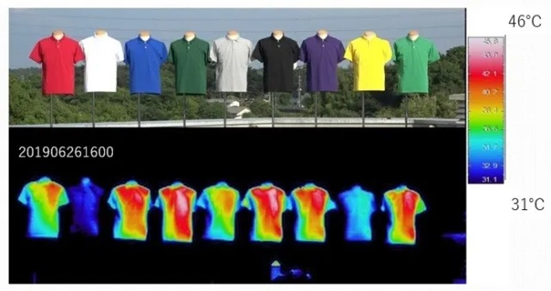 Για το πείραμα ο Ichinose έθεσε εννέα κορμούς μανεκέν στον ιαπωνικό καλοκαιρινό ήλιο, ο καθένας ντυμένος με ένα πουκάμισο πόλο διαφορετικού χρώματος, και μετά από μόλις πέντε λεπτά έκθεσης έλεγξε τις επιφανειακές θερμοκρασίες των υφασμάτων.