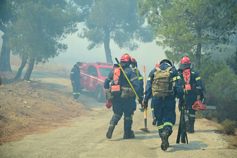 Πυροσβέστες και εθελοντές προσπαθούν να σβήσουν νέες εστίες φωτιάς που ξεπηδούν