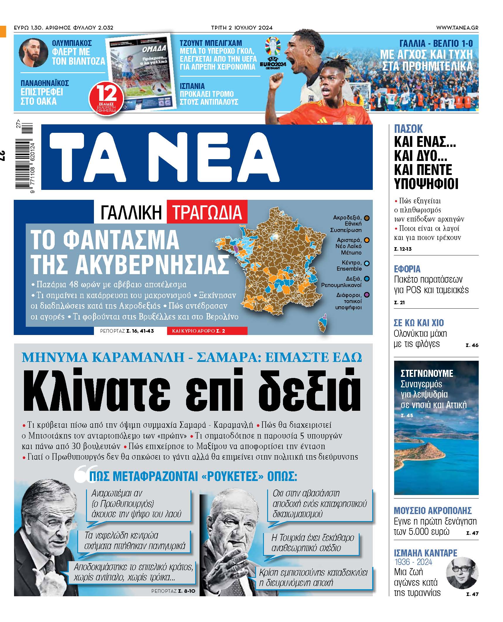 Στα «ΝΕΑ» της Τρίτης: Κλίνατε επί δεξιά