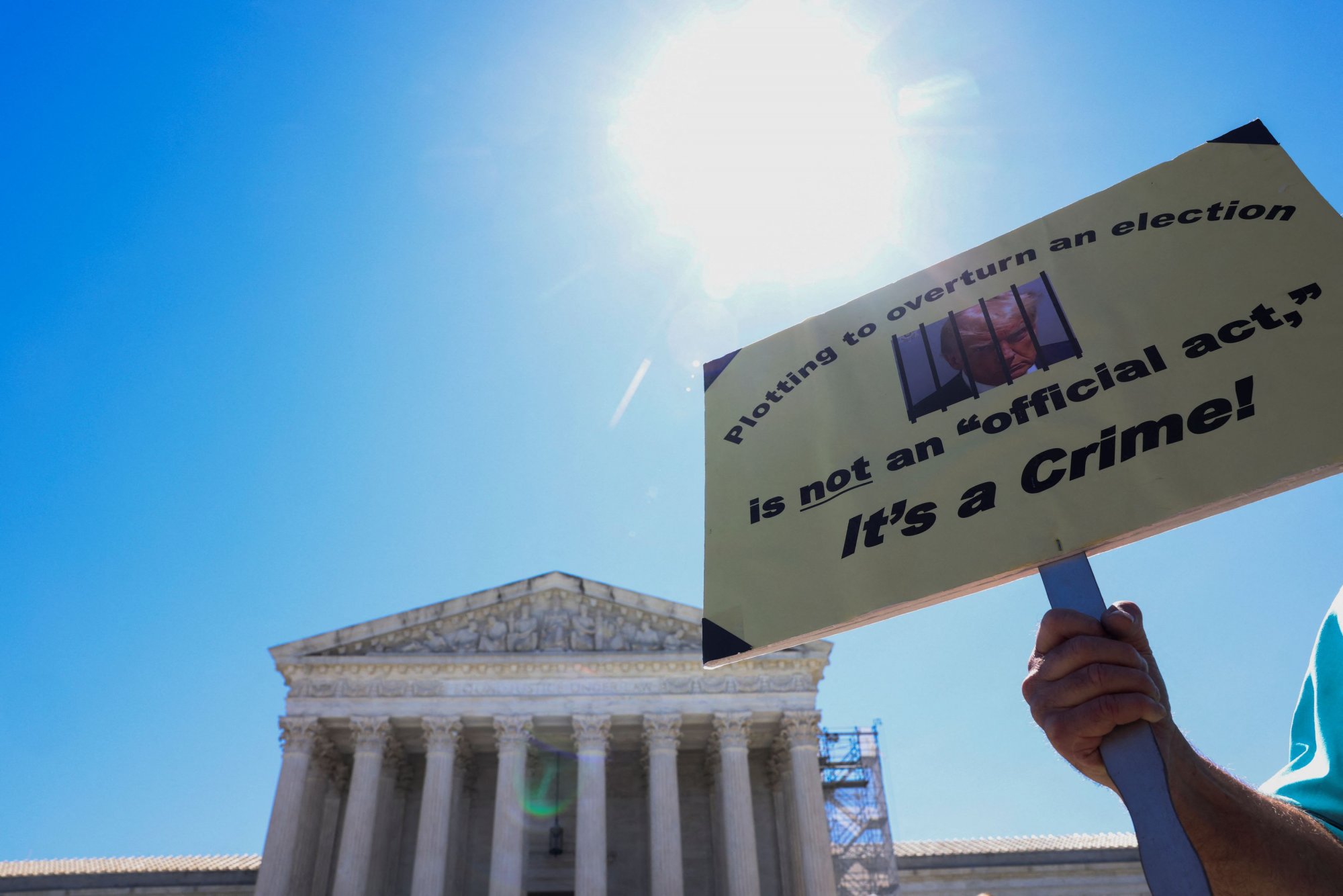 Στην απόφαση που αφορά την ομοσπονδιακή ποινική υπόθεση εναντίον του Ντόναλντ Τραμπ για τις προσπάθειές του να ανατρέψει την εκλογική του ήττα το 2020, το δικαστήριο έκρινε ότι δεν μπορεί να διωχθεί για επίσημες ενέργειες που έγιναν στο πλαίσιο των συνταγματικών του εξουσιών ως προέδρου. Οι ιδιωτικές ενέργειες, σύμφωνα με την απόφαση, δεν προστατεύονται. Οι έξι συντηρητικοί του δικαστηρίου αποτέλεσαν την πλειοψηφία στην απόφαση, με τις φιλελεύθερες Σόνια Σοτομαγιόρ, Έλενα Κάγκαν και Κετάντζι Μπράουν Τζάκσον να διαφωνούν.