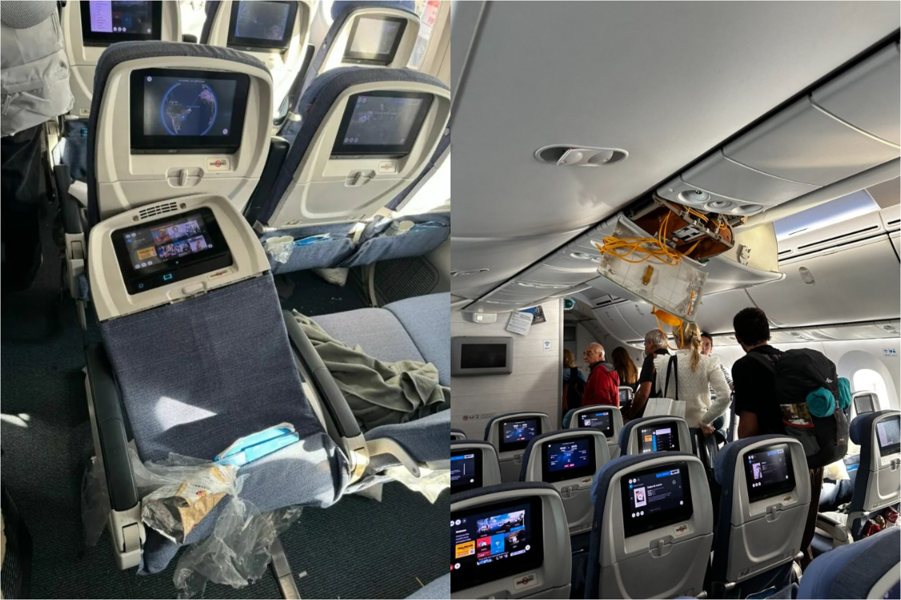 Ένας χρήστης στην πλατφόρμα κοινωνικής δικτύωσης X, ο οποίος ισχυρίστηκε ότι βρισκόταν στην πτήση, δημοσίευσε φωτογραφίες από σπασμένα πάνελ οροφής, με σωλήνες και καλώδια εκτεθειμένα.