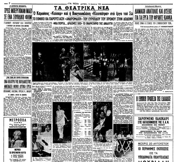 «ΤΑ ΝΕΑ», 13.8.1962, Ιστορικό Αρχείο «ΤΟ ΒΗΜΑ» & «ΤΑ ΝΕΑ»