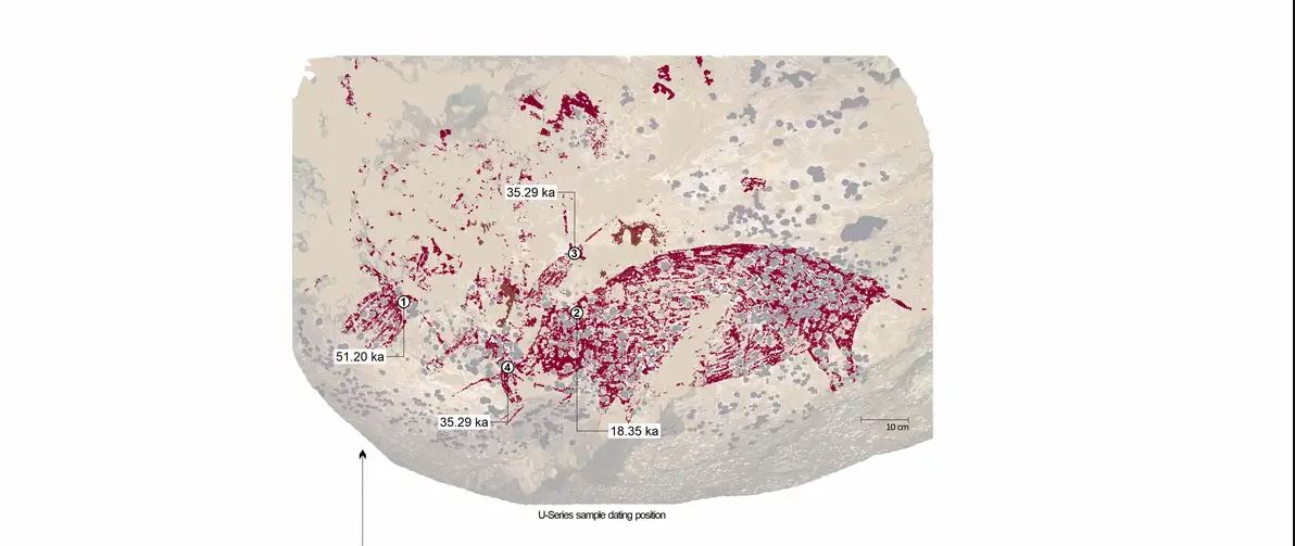 Με την πρόσφατη ανακάλυψη, στο γειτονικό σπήλαιο Μάρος-Πάνγκεπ, στην Κελέβη, «ξεπερνάμε για πρώτη φορά το όριο των 50.000 ετών», είπε ο αρχαιολόγος Μαξίμ Όμπερτ, του Πανεπιστημίου Γκρίφιθ της Αυστραλίας. Το γεγονός ότι οι πρώτοι εκπρόσωποι του ανθρώπινου είδους κατάφεραν να αφηγηθούν μια τόσο «περίπλοκη» ιστορία μέσω της τέχνης θα μπορούσε να σημαίνει ότι θα πρέπει να επανεξετάσουμε το πώς αντιλαμβανόμαστε τη διανοητική εξέλιξη του Homo sapiens, πρόσθεσε.