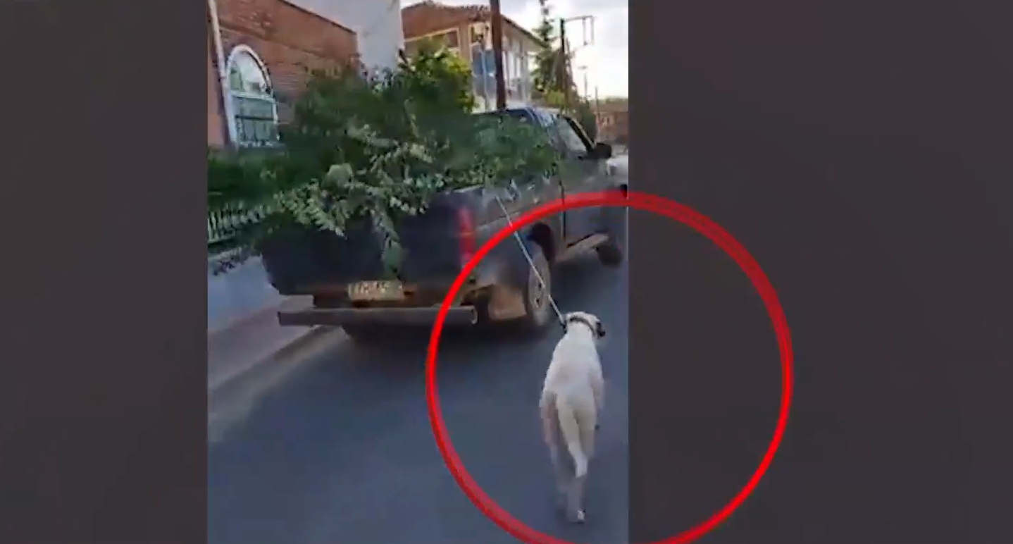 Στη πρώτη περίπτωση, στη Λευκοπηγή Κοζάνης, ιδιοκτήτης αγροτικού οχήματος, το οποίο έχει φορτώσει με κλαδιά δέντρου, κινείται μέσα στο χωριό και από πίσω σέρνει έναν δεμένο σκύλο.