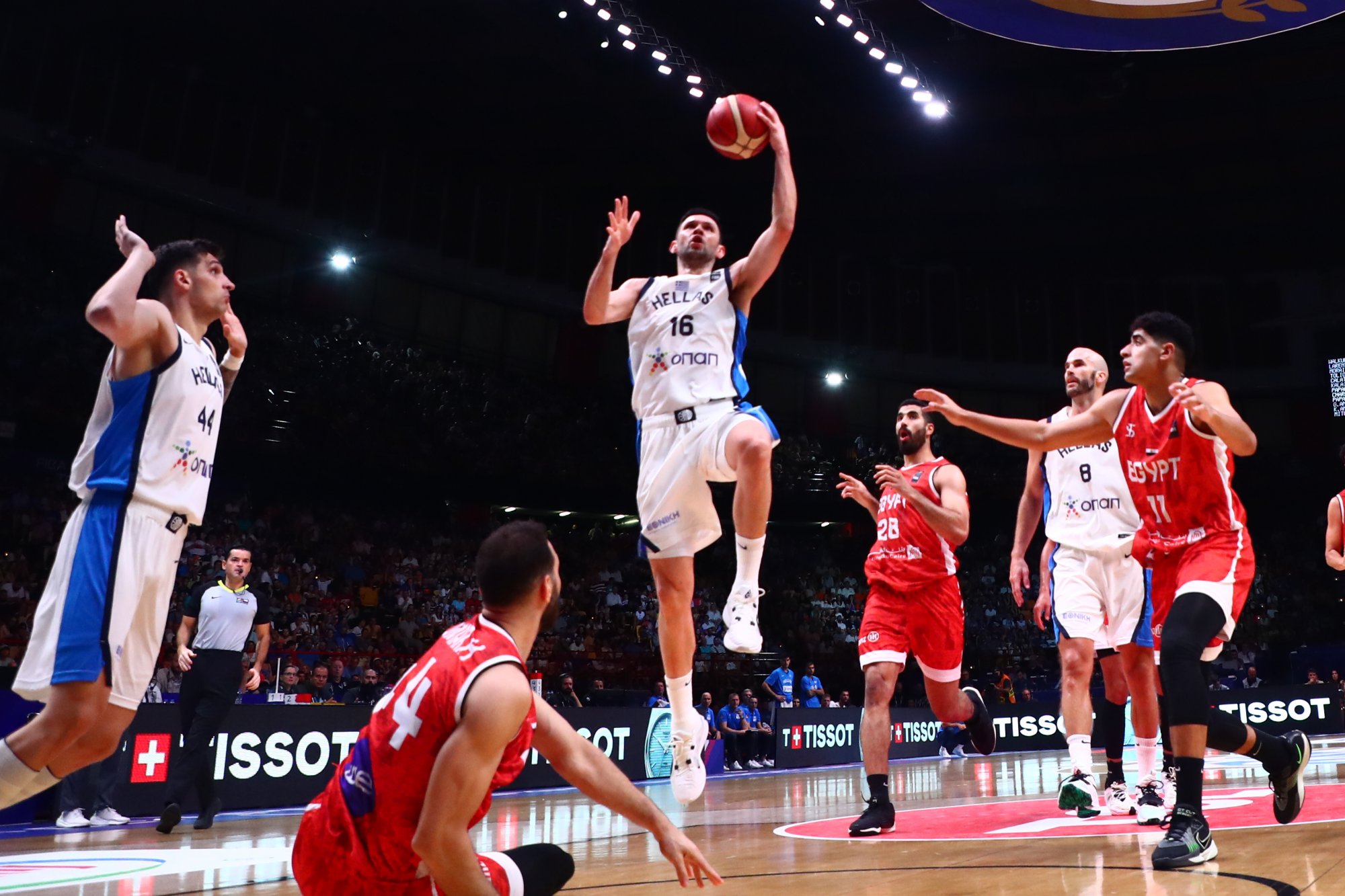 Το αντιπροσωπευτικό μας συγκρότημα ξεκίνησε πολύ καλά την αναμέτρηση, με τους διεθνείς να σκοράρουν με όλους τους τρόπους απέναντι σε μια σαφώς λιγότερο ποιοτική ομάδα, με τη διαφορά να φτάνει γρήγορα διψήφια επίπεδα και το +14 (18-4), με τους Αιγύπτιους να ανακάμπτουν προς το τέλος του πρώτου δεκαλέπτου και με επιμέρους 2-8 να κλείνουν την περίοδο στο -8 (20-12). Στο δεύτερο δεκάλεπτο η ενέργεια της Εθνικής άρχισε να πέφτει και με τις αναμενόμενες αλλαγές του Βασίλη Σπανούλη, δόθηκε η ευκαιρία στην Αίγυπτο να μειώσει κι άλλο τη διαφορά. Μετά το 36-25 οι Αφρικανοί έτρεξαν ένα 6-13 για να μειώσουν αρχικά στο καλάθι (40-38) και στους τέσσερις στο φινάλε του ημιχρόνου (42-38).