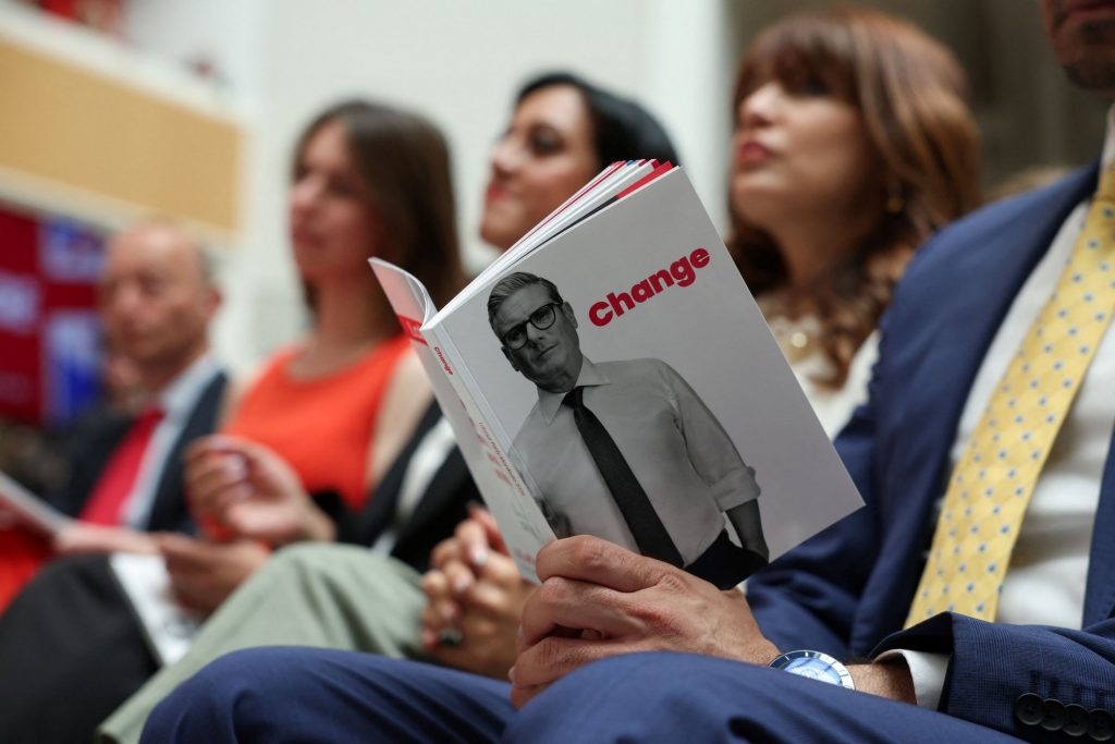 Το μανιφέστο των Εργατικών, με φωτογραφία του Κιρ Στάρμερ και τίτλο «Αλλαγή» (REUTERS/Phil Noble)