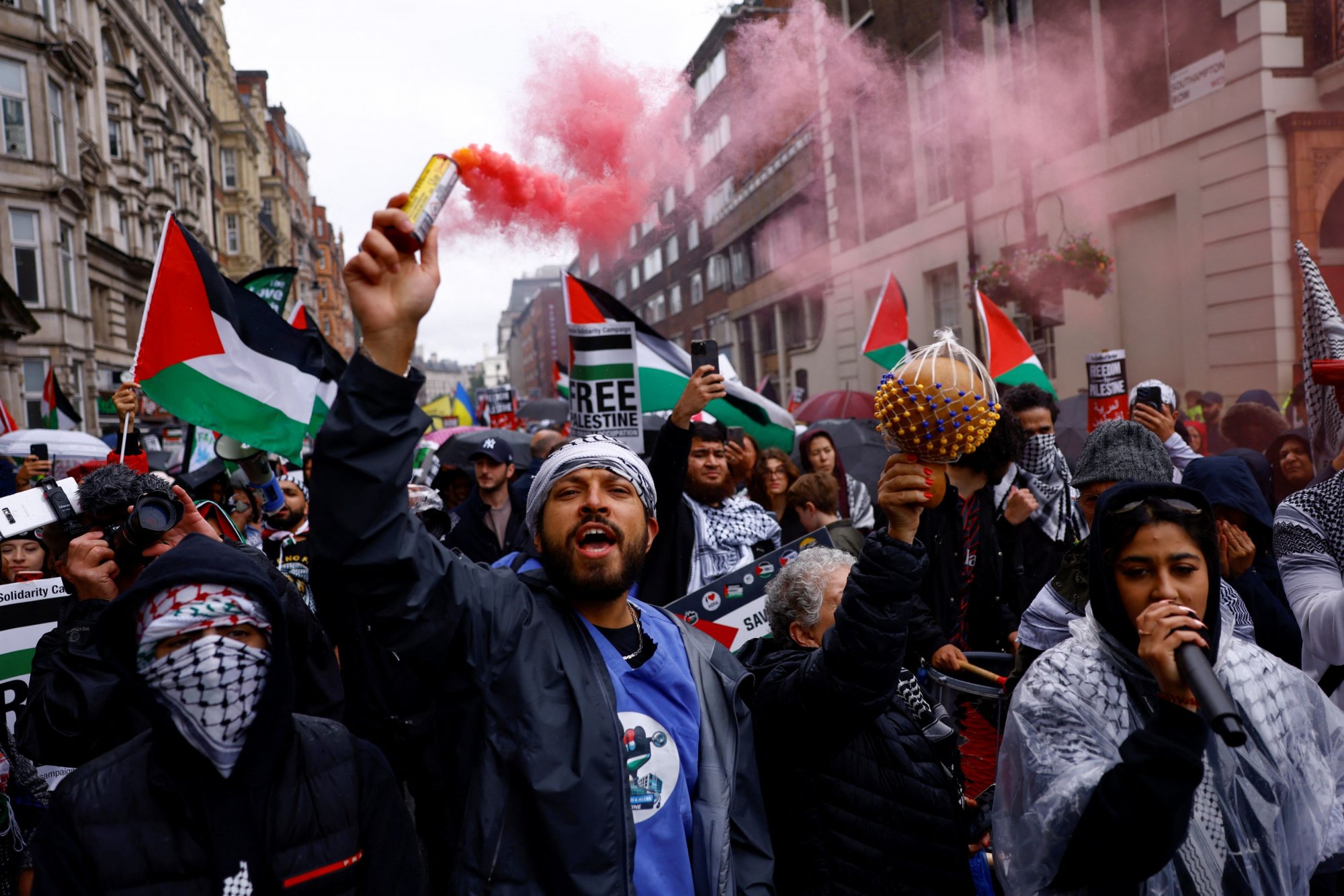 Ο πρώην ηγέτης του Εργατικού Κόμματος του Ηνωμένου Βασιλείου που εκλέχτηκε ανεξάρτητος βουλευτής, Τζέρεμι Κόρμπιν, δημοσίευσε μια φωτογραφία στο Χ από τη σημερινή μεγάλη φιλοπαλαιστινιακή διαμαρτυρία στο Λονδίνο.