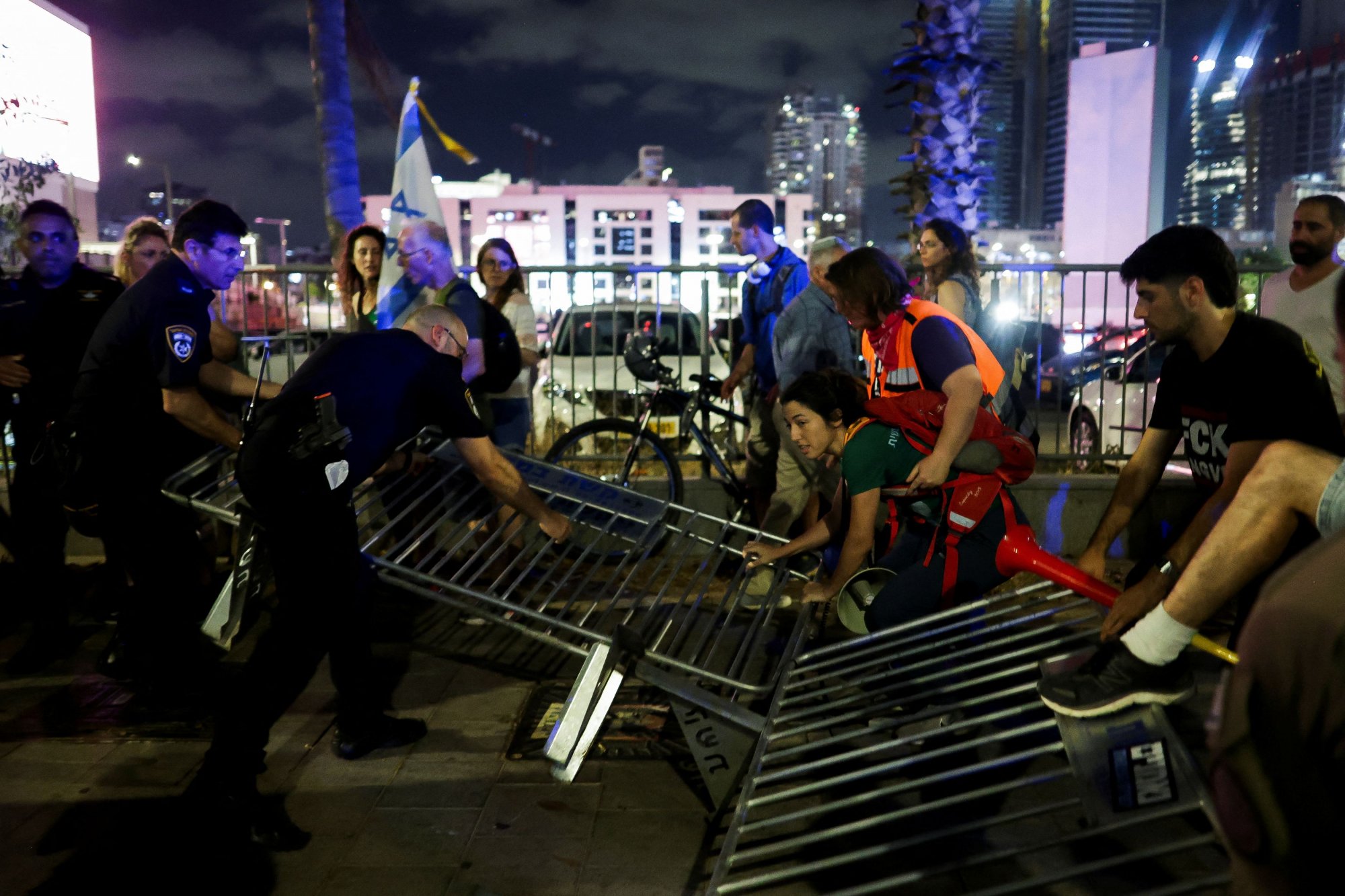 Τα ισραηλινά μέσα ενημέρωσης μεταδίδουν ότι στο Τελ Αβίβ ξέσπασαν συγκρούσεις μεταξύ της αστυνομίας και διαδηλωτών που ζητούν μια συμφωνία που θα εξασφαλίζει την απελευθέρωση των Ισραηλινών αιχμαλώτων που κρατούνται από τη Χαμάς στη Γάζα.